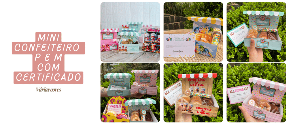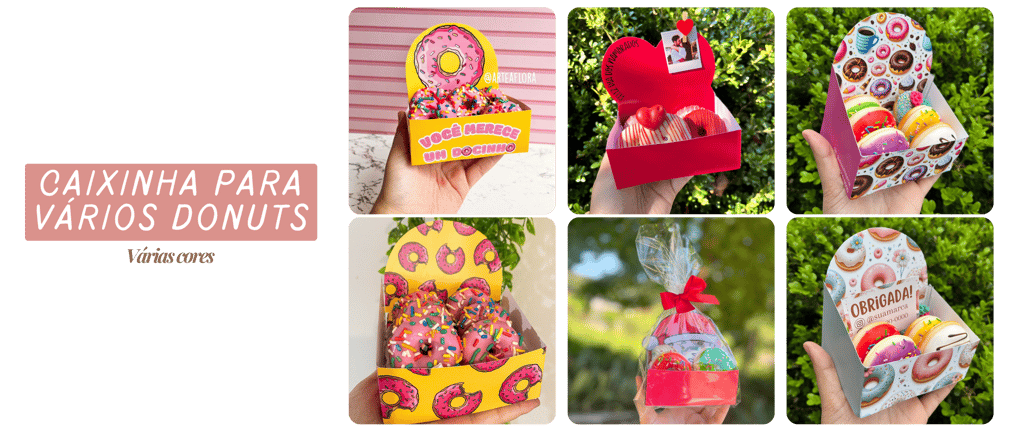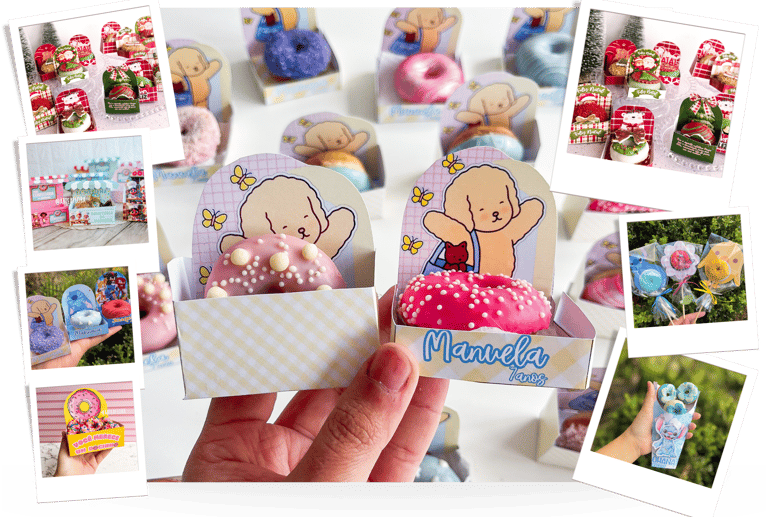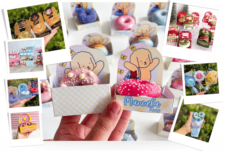 Surpreenda seus clientes com lembrancinhas únicas! Nosso Pack oferece mais de 500 artes prontas de PORTA MINI DONUTS, CAKE DONUT BOX, CAKE DONUT NO PALITO, MINI CONFEITEIRO P E M + EMBALAGENS PARA DONUT + BUQUÊ CAKE DONUTS para você personalizar (nome e idade) e imprimir, Ideal para recortar com TESOURA. Recebe ATUALIZAÇÕES EM DATAS COMEMORATIVAS.