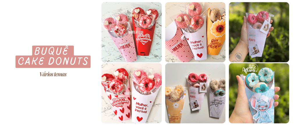 Kit Lembrancinhas Porta donuts, Cake box, Mini confeiteiro e Buquês