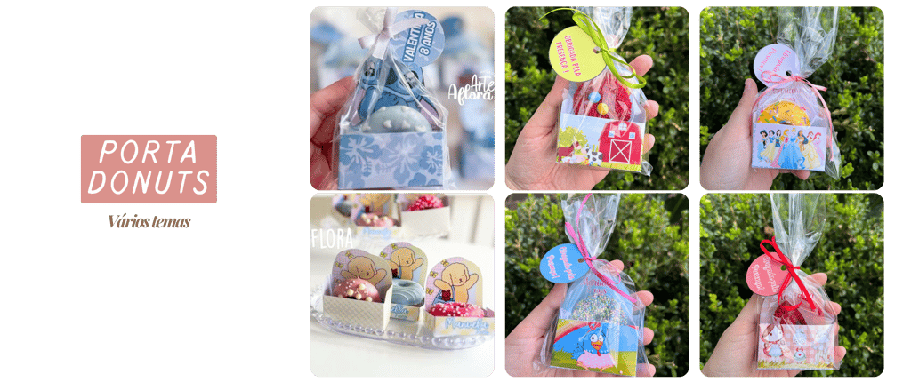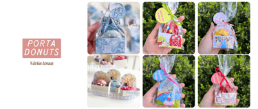 Porta donuts: vários temas infantis, chá de bebê, casamento