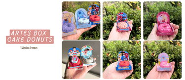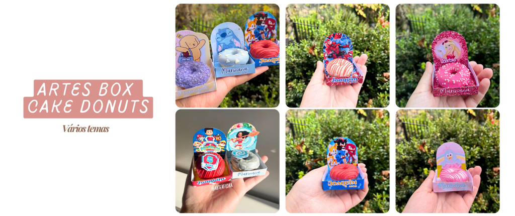 (acompanha molde em branco)Box Cake donuts: vários temas infantis (acompanha molde em branco editável)